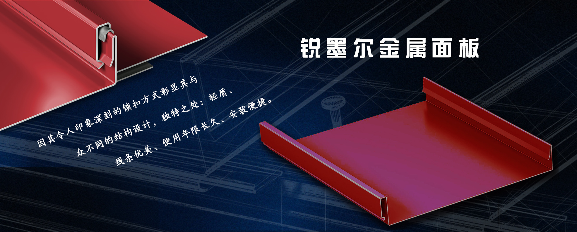 輕質(zhì)耐用鋁鎂錳面板,搭扣式結(jié)構(gòu),沒有固定件暴露在空氣中,抗風(fēng)性能好